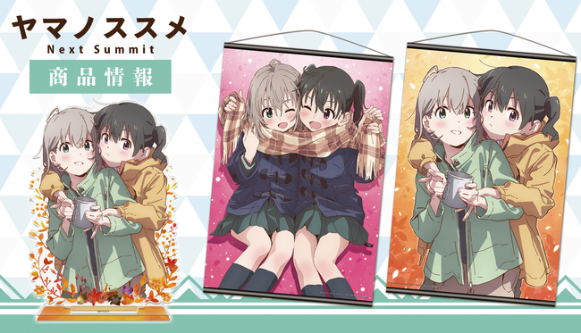 TVアニメ「ヤマノススメ Next Summit」B2タペストリー、アクリルポートレート、アクリルキャラスタンドの予約受付中!