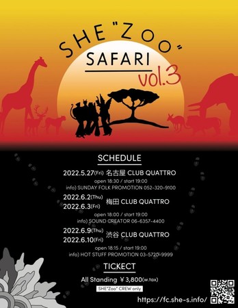 また、5月27日(金)より約2年半ぶりとなるFC限定ライブ「SHE“Zoo”サファリ vol.3」を東名阪で開催することも決定!
