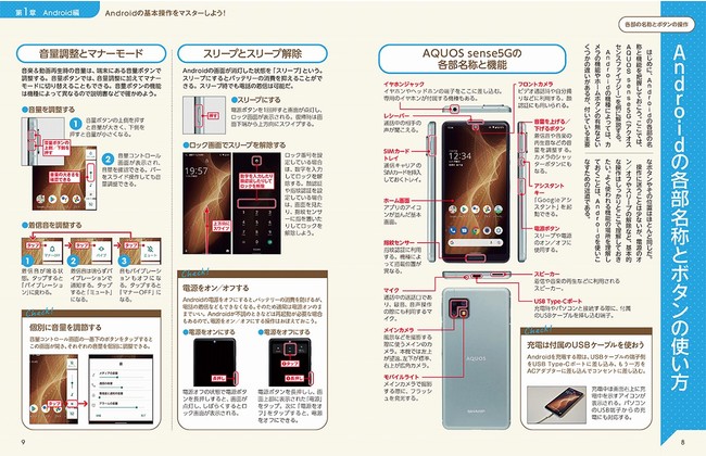 さらに、指紋認証や顔認証といったセキュリティ機能の設定方法や、よくある困りごとの対処法なども紹介。この1冊でスマホの使い方・活用法がひととおり理解できます。