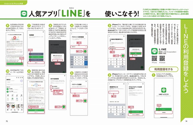 AndroidかiPhoneかを問わずに使えて、メッセージのやり取りやビデオ電話などを無料で行える人気アプリ・LINE。本書では、このLINEの基本的な使い方も独立して解説。LINEの登録方法から、家族や友人とのコミュニケーションの手順までをわかりやすく説明しています。