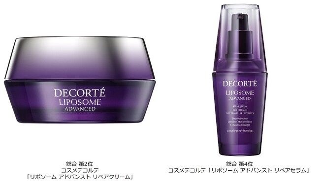 特に、コスメデコルテの代表的なスキンケア商品である「リポソーム アドバンスト リペアクリーム」、「リポソーム アドバンスト リペアセラム」は、共に総合10位内にランクインしており、このリポソームシリーズがコスメデコルテ人気を牽引したことは間違いありません。