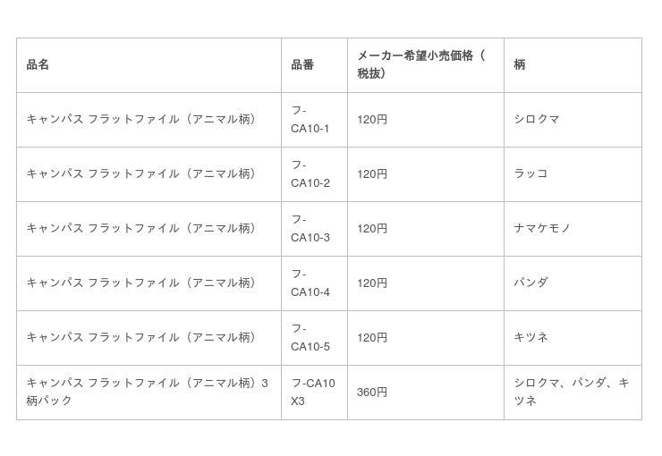 「キャンパス フラットファイル(アニマル柄)」の特長