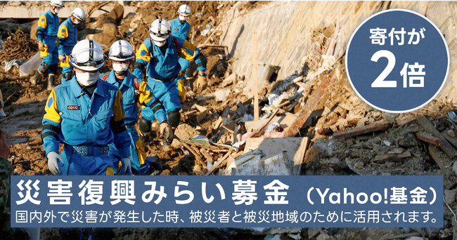 ユーザーの寄付額に対して同額をYahoo! JAPANが寄付する「マッチング寄付」を行い、ユーザーの支援額を2倍にして被災地の支援などを行っています。