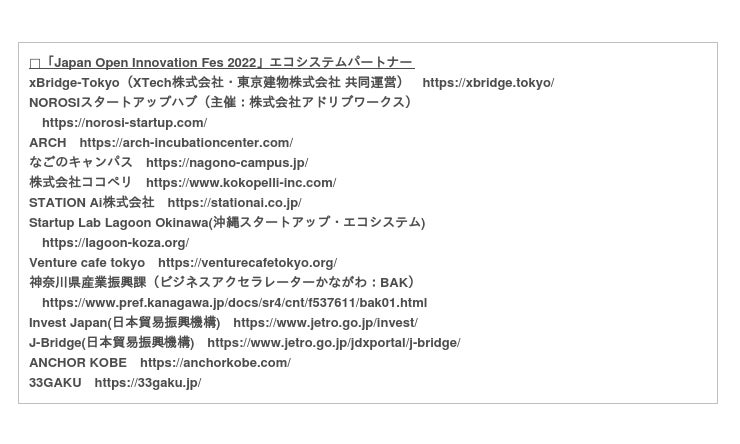 ■「Japan Open Innovation Fes 2022」エコシステムパートナー
