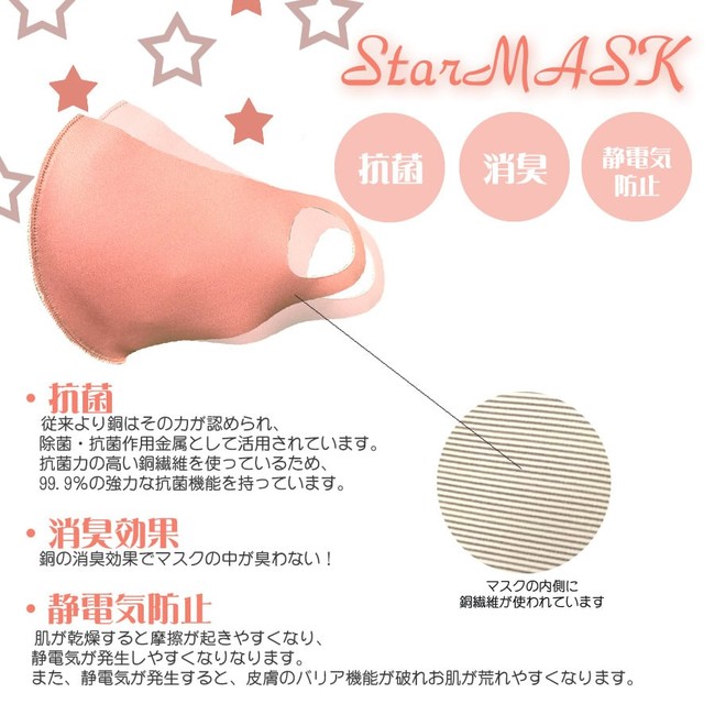 大きめサイズで鼻から顎にかけてすっぽりカバー!洗える銅マスク!今メディアでも大注目されている銅繊維マスク「StarMask」