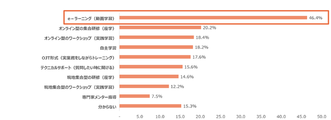 ■1,000人以上の企業では約6割が「e-ラーニング(動画学習)」での学習を希望している