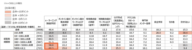 ■1,000人以上では約6割が「e-ラーニング(動画学習)」での学習を希望している