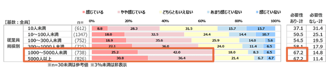 ■1,000人以上の企業ではたらく人の約7割、全体では約6割が「デジタルに関する学習は必要」と感じている