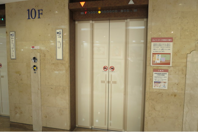 本館10階では、内装に約2億年前・ジュラ紀の化石入り大理石「ジュライエロー」を使用しており、エスカレーター付近の壁や床には、アンモナイトなどの化石を見つけることができます。