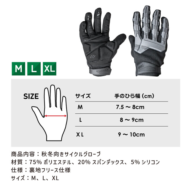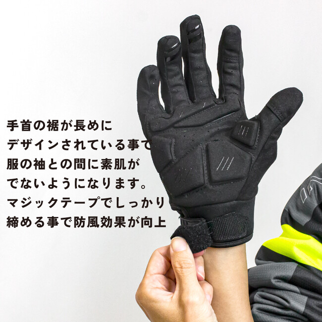 グローブを装着したまま行える秋冬用の自転車グローブです。