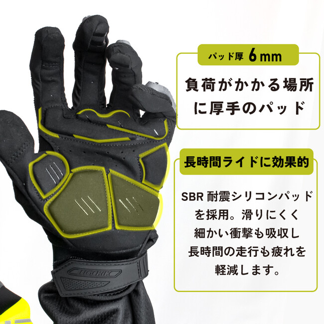 手の裏にもハンドルを握る際に負荷が掛かりやすい場所に厚手のパッドを配置。