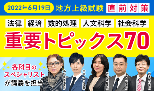 公務員試験【地方上級試験(2022年6月19日)】直前対策講座「重要トピックス70」をリリース