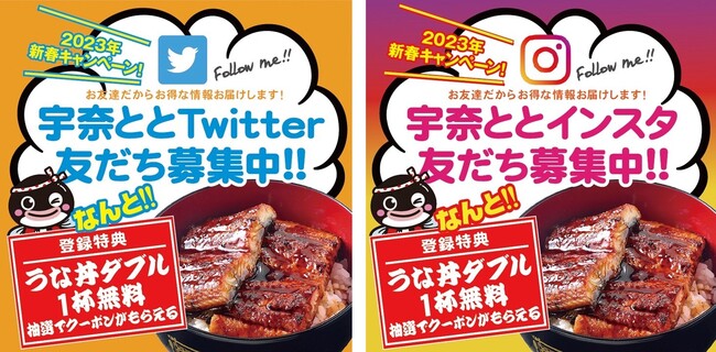 新春お年玉企画!「名代 宇奈とと」のTwitter・Instagramをフォローして「うな丼ダブル」の無料クーポンをゲット!