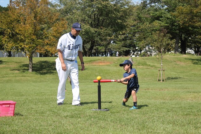 埼玉西武ライオンズOB選手が講師となり、ボールの投げ方や打ち方のレッスン、チームに分かれての試合形式を取ったレクリエーションを行います。野球やソフトボール未経験者向けの内容で、初心者の方でも楽しむことができますので、女の子やお母さんも安心して参加いただけます。