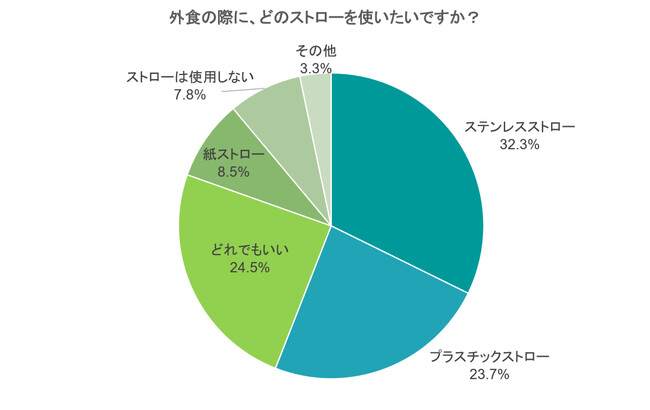 お客様へのアンケートでは、紙製やプラスチック製と比較し、どのストローを使いたいかという質問に対しては、「ステンレスストローを使いたい」というお客様が最も多く、その理由には「環境に良い」「紙ストローが嫌」「冷たさが良い」と言ったご意見を頂きました。お客様自身が環境に配慮すること、またその一環としてステンレスストローの使用に関心を持っていることも感じられる結果となりました。