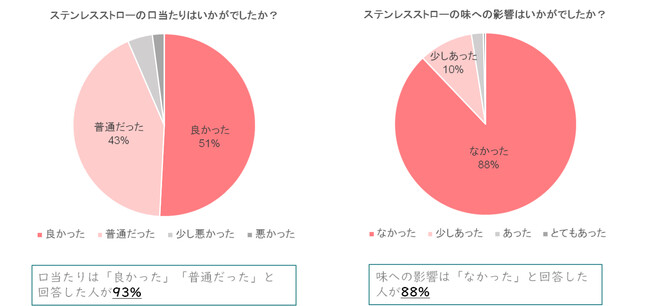 また、ストローで重視する項目が「口当たり」「味への影響」の2項目であることが分かり、この2点においてステンレスストローは高評価でした。