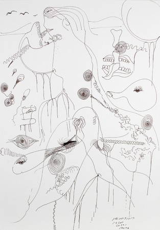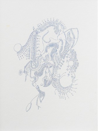 1961年兵庫県生まれ、2017年没。洋の東西を問わず神話や物語などに着想を得て、太古から自然をいきる生物、特に自ら愛でた鳥類をたびたび表す。息づかいを映し出すかのように微細な線を引きつなげて、青や水色を基調とするドローイングを多く手がけた。作品はローザンヌのアール・ブリュット・コレクション、東京国立近代美術館などに収蔵。