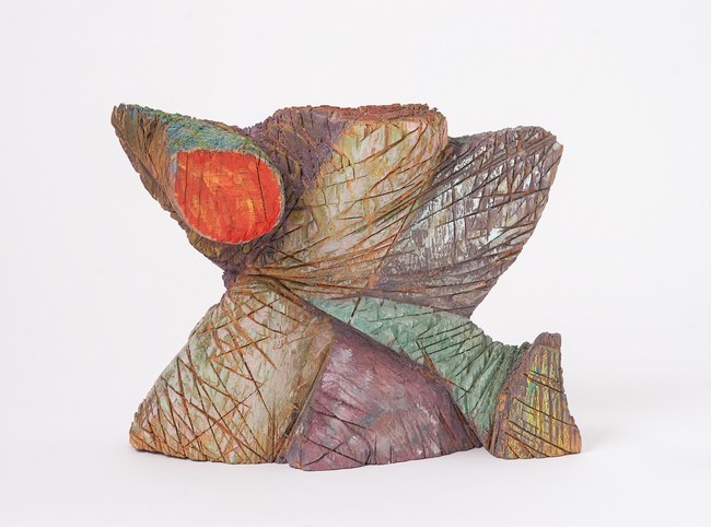 1943年オハイオ州コロンバス生まれ、2005年没。1987年よりCGACに参加。糸や毛糸、端切れなどを丹念に巻きつけた「繭」のような立体作品を制作。中には、アトリエで自ら見つけたものを収める。素材と巻きの強さが変化するにつれ、新たなテクスチャーとより自由な輪郭線を得ていく。作品は、ニューヨーク近代美術館、パリのポンピドゥー・センターなどに収蔵。