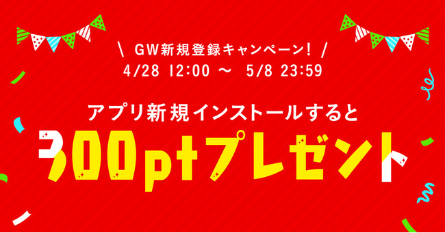 ただいま新規インストールと会員登録ですぐに使える300ポイントプレゼント!