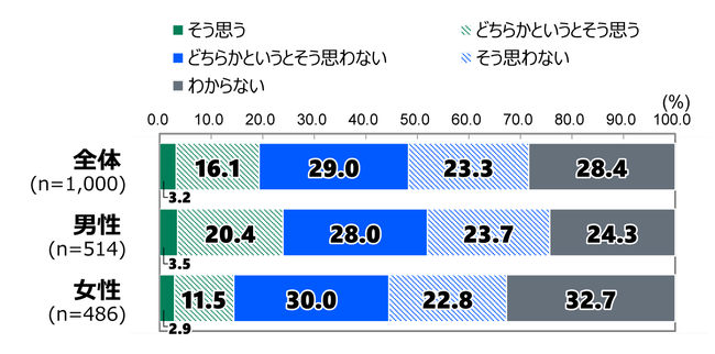 (※「そう思う」+「どちらかというとそう思う」、「そう思わない」+「どちらかというとそう思わない」の値)