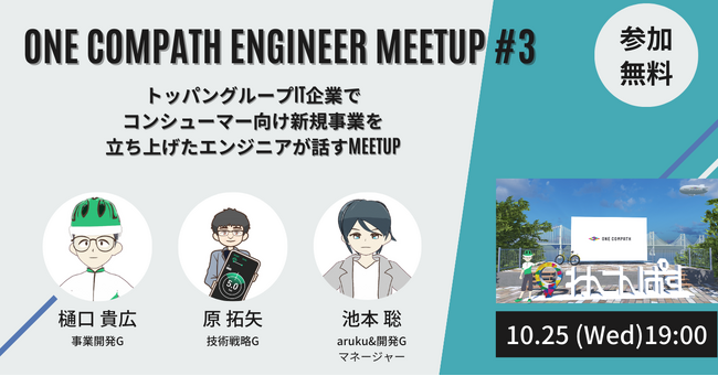 凸版印刷株式会社のグループ会社である株式会社ONE COMPATH(ワン・コンパス)は、自転車ポイ活アプリ「U-ROUTE(ユールート)」やリリースから間もなく7年を迎えるウォーキングアプリ「aruku&(あるくと)」の開発技術を外部に伝える無料のオンライン技術勉強会「ONE COMPATH Engineer Meetup#3」を10月25日(水)に開催します。当社の技術に興味のあるITエンジニアやITエンジニア志望の方を対象とします。なお、本イベントは当社のエンジニアが3Dアバターに扮し、バーチャル空間からお届けします。