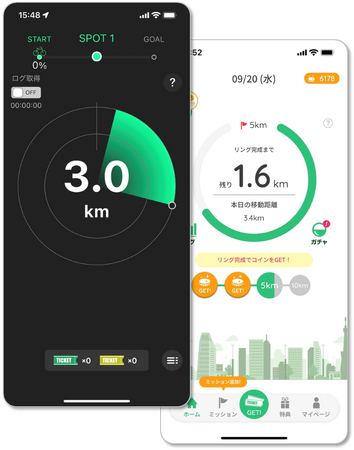 移動距離や設定した目的地へのゴール、毎日のミッション達成、移動中に手に入れられるチケットで回せるガチャなど、自転車移動で獲得できるコインを集めると、お買い物に使えるポイントと交換できます。これまで提供してきたサイクルコンパスとしての機能も利用できます。