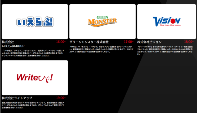 採用の入り口を動画で完結するプラットフォーム「JOBTV for新卒」では、コロナ禍で就職活動に苦戦する就活生をサポートしたいという想いから、本選考開始のタイミングに合わせ、通常選考以外に「ES不要&履歴動画応募」形式のJOBTV特別選考枠をご用意いただいた企業の人事担当の方々をお招きし、オンライン配信による採用直結の特別選考説明会を開催します。