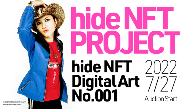5月に100個限定で販売された『hide NFT Digital Card No.001』は、販売開始からわずか1時間足らずでSOLD OUTとなり、hideのファンのみならず、NFTコレクター間でも話題となりましたが、今回リリースとなる 『hide NFT Digital Art No.001』は、1点モノの“アート作品”として、オークション形式での販売となります。