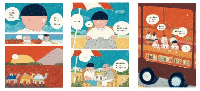 クレヨンで描かれたのびのびとした表現と、その不可思議な物語の世界。