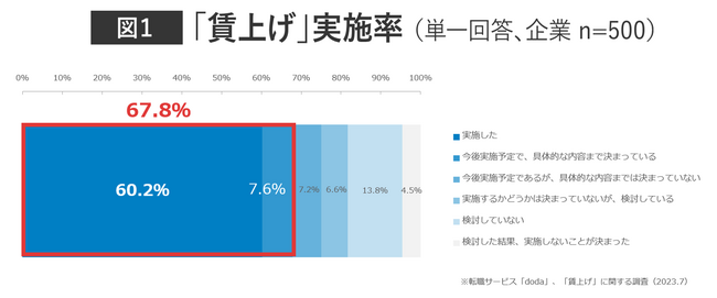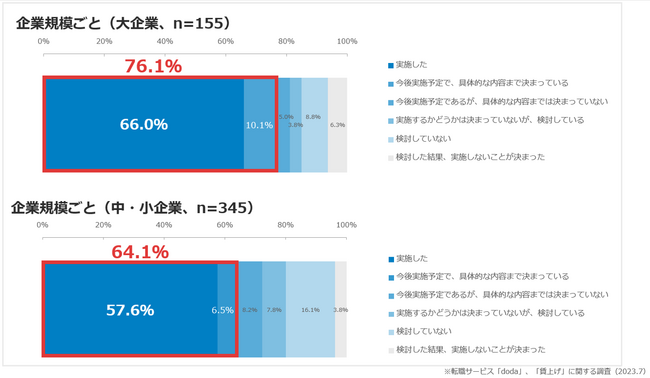 大企業で76.1%、中・小企業でも64.1%が賃上げを実施