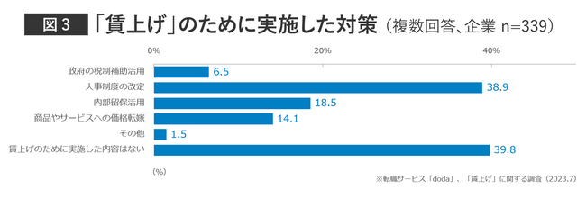 賃上げのため企業が実施した対策で最も多かったのは「人事制度改定」(38.9%)