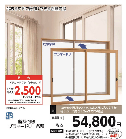 税込価格:54,800円(LowE複層ガラス 幅2.0m×高さ1.0mタイプの場合)