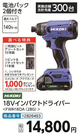 商品名:HiKOKI 18Vインパクトドライバ<FWH18DA(2GB)>+ 選べる特典付き