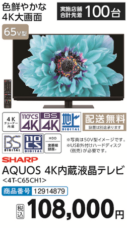 商品名:シャープ 65V型 4K液晶TV 4T-C65CH1