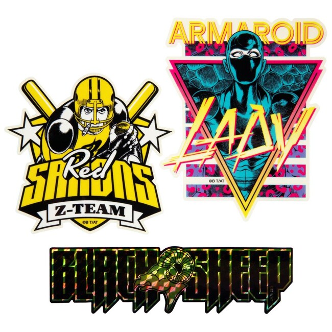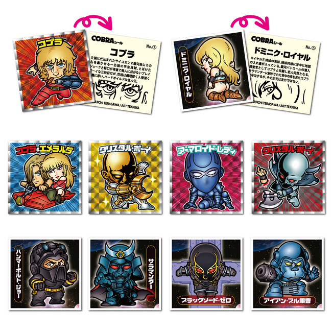 『COBRA』の名シーンがダイカットステッカー5種がセットになって登場!躍動感あふれるコブラやアーマロイド・レディ、カラー原画をもとにしたクリスタル・ボーイのイラストなど鉄板の品揃えだ。
