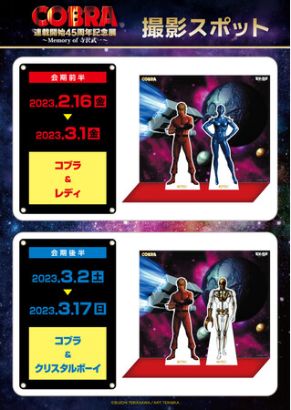 会場では『コブラ』にまつわる貴重な展示や、45周年記念オリジナルグッズを多数公開。