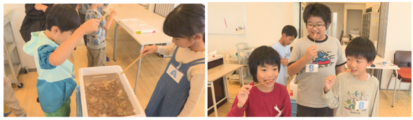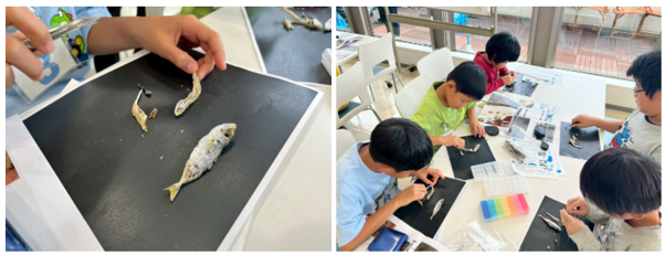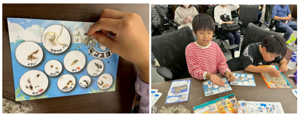 ちりめんじゃこの中に混ざる様々な海の生物を探しました。普段食べているタコやイカなどの赤ちゃんのほか、タツノオトシゴや魚に寄生する甲殻類の一種”ウオノエ”、食用としてはあまり一般的ではない”ヨウジウオ”など、普段目にすることのない海の生物にも出会いました。