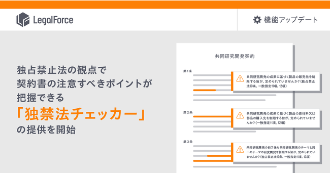AI契約審査プラットフォーム「LegalForce」、独占禁止法の観点で契約書の注意すべきポイントが把握できる「独禁法チェッカー」の提供を開始!