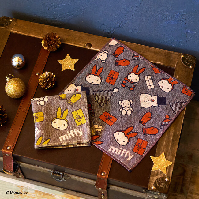 クリスマスツリーや雪だるま、冬の装いのミッフィーがデザインされたハンカチも、気分を盛り上げてくれそうです!