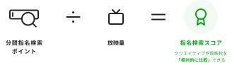 ノバセルでは、テレビCMインプレッション100万回あたりの分間指名検索ポイントを「指名検索スコア」と命名。スコアが高いほど検索獲得効率が良い傾向にあるとして、クリエイティブや放映枠を相対比較する際に、この値を用います。