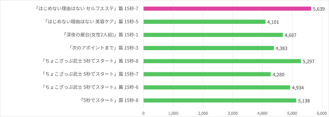 15秒CM「はじめない理由はない セルフエステ」篇が特にスコアを伸ばし、2位と大差をつけて1位となりました。