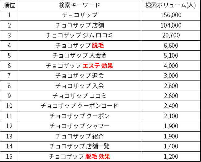では、これらの検索ユーザーは何に興味をもって、「chocoZAP」を検索しているのか。