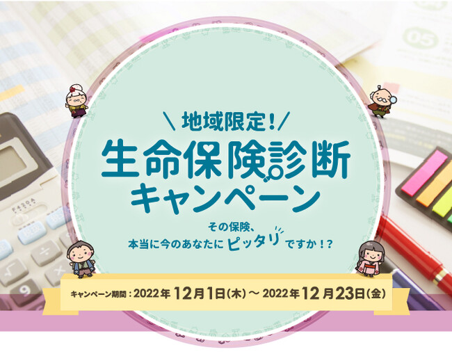 北陸銀行(頭取 中澤 宏)は、2022年12月1日(木)より、生命保険診断キャンペーンを実施いたします。キャンペーン期間中に生命保険の診断サービスをご利用いただいたお客さまには、先着合計600名さまに当行オリジナル紙製ファイルをプレゼントいたします。