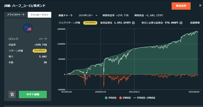 例:FX自動売買セレクト「ハーフ_ユーロ/英ポンド」の場合(※2023/4/19時点)