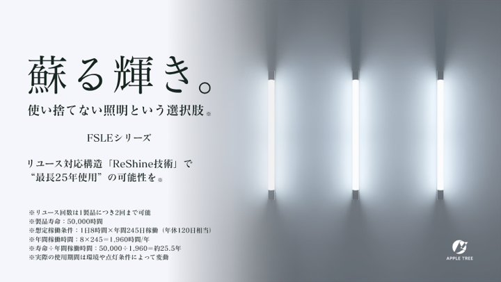 株式会社アップルツリー、効率200 lm/W・リユース可能直管LED照明『FSLEシリーズ』を販売開始