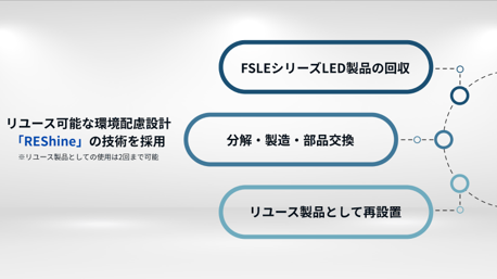 FSLEは、リユース(再使用)を前提とした構造を採用し、製品寿命50,000時間の範囲内で最大2回のリユースが可能な設計となっています。