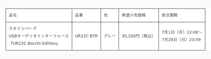 アニメ『ぼっち・ざ・ろっく!』とのコラボレーションモデルを期間限定で受注販売 スタインバーグ USBオーディオインターフェース『UR22C Bocchi Edition』