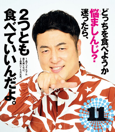 「どっちを食べようか悩(なや)ましんじ? 迷ったら、2つとも食べていいんだよ」