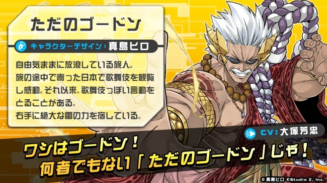 真島先生による完全書き下ろしのキャラクター『ゴードン』のイラストとプロフィールを初公開いたしました。キャラクター名『ただのゴードン』に含まれる「ただの」の意味は、ゲーム内ストーリーの展開により、次第に明かされていく予定です。