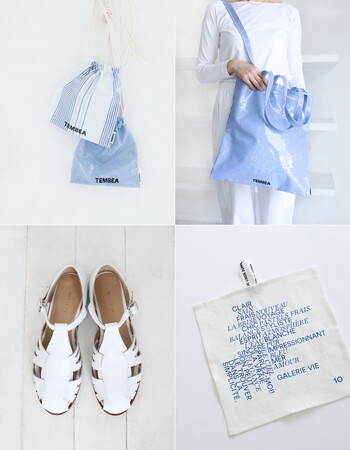 左上からPochette / TEMBEA 27-03-32-03069 ¥7,700Tote bag / TEMBEA 27-03-32-03070 ¥18,150Shoes / GALERIE VIE 27-01-32-01032 ¥35,200他にも、バッグブランド〈 TEMBEA(テンベア)〉とコラボレーションした涼しげなPVCバッグや、オールシーズン楽しめるグルカサンダルのホワイトカラーなど、特別なアイテムが一堂に揃います。
